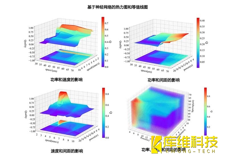 借助熱力圖與等值線(xiàn)圖,能清晰錨定提升加工效果的最優(yōu)參數(shù)區(qū)域:最大功率、最小間距、最大速度搭配下,加工質(zhì)量趨近最佳,力求達(dá)成無(wú)環(huán)形、小壁錐度的理想成果。物理仿真模型進(jìn)一步驗(yàn)證了機(jī)器學(xué)習(xí)模型優(yōu)化結(jié)果,直觀展示出激光功率、填充間距變動(dòng)時(shí),小孔燒損深度、孔壁錐度、圓環(huán)結(jié)構(gòu)的變化態(tài)勢(shì)。